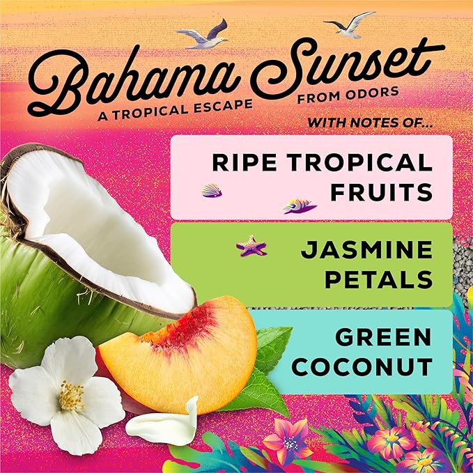 - Clumping cat litter odor control formula that helps you transform your cat’s litter box into an oasis from odors while transporting you to a tropical purradise with its Bright Tropical fragrance