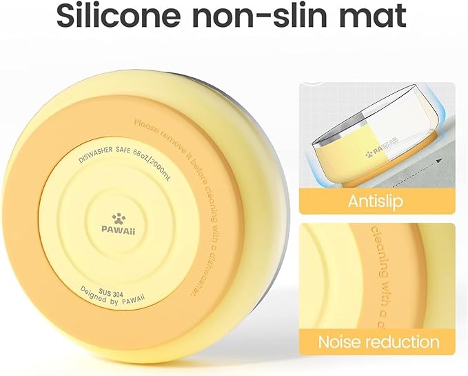 Pawaii Insulated Stainless Steel Dog Bowl with Non-Slip Base & Double Wall Design, ID Tag Included - 68oz Durable Dishwasher Safe Bowl for All Dogs