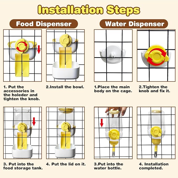 - Easy to Clean: Automatic rabbit feeder and waterer set is made of high quality plastic material, the parts are easy to disassemble, convenient for your daily cleaning, it is recommended to wash it once a week and dry it before giving it to your pet