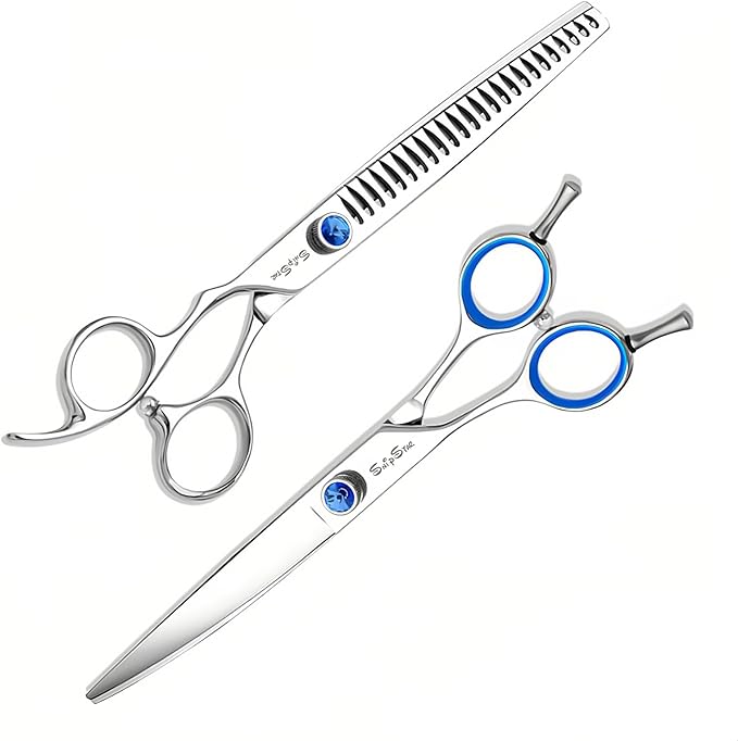 - Ergonomic Grip Handles--Designed for comfort and control, dog scissors for grooming feature offset, ergonomic handles that reduce hand and wrist fatigue. Perfect for long grooming, allowing for precise detailing and overall trimming with ease