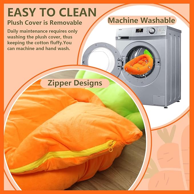 - ๐[Cartoon Design] Carrot shaped small animal bed is cute and vivid, brighten up your home space and touch your heart with your beloved pet. This pet bed is not only suitable for rabbits, but also ideal for guinea pigs, chinchillas and other small pets. You can place it in the cage, on the floor, on the sofa or any indoor space to create a cozy resting place for your pet.