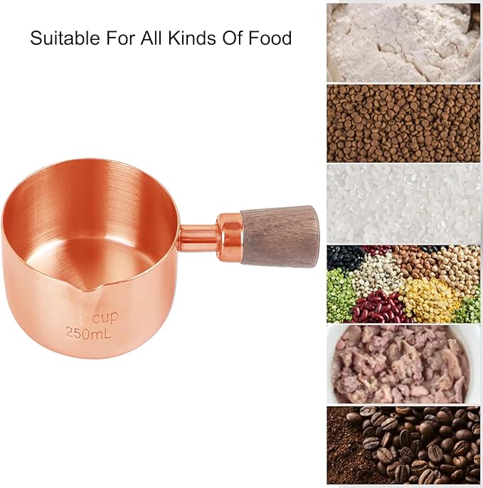 1 Cup Stainless Steel Dog Cat Food Measuring Scoop for Dry and Wet Food, Accurate Measurement for Rice, Flour, Grain (Rose Gold)