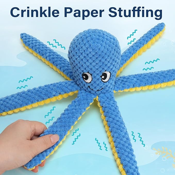 - Ocean-Themed Dog Toy Set: Our 5pc dog toys set includes a blue octopus dog toy, a yellow crab dog toy, a red lobster dog toy, a green turtle dog toy, a blue whale dog toy; Perfect for interactive play with your dog; Not suitable for aggressive chewers and are not indestructible