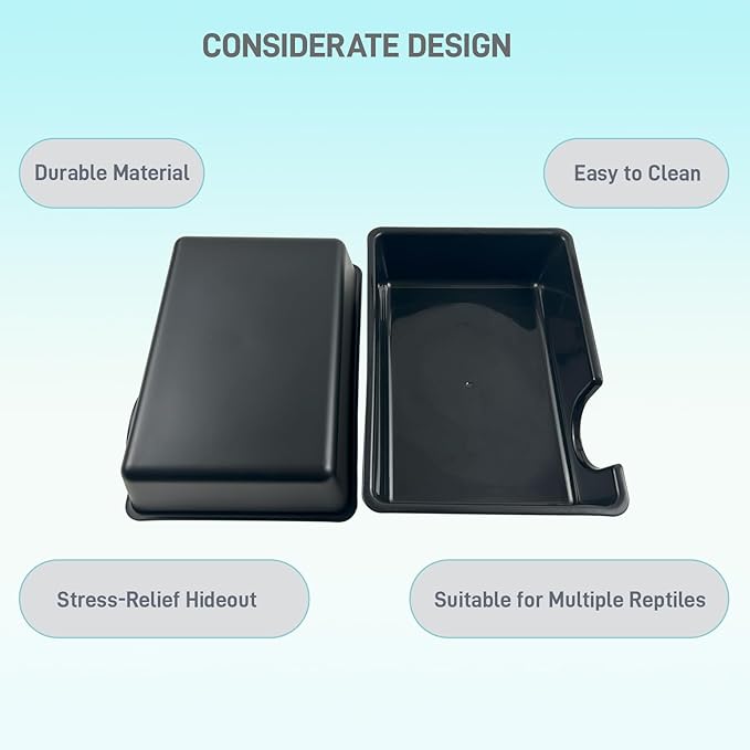 - 【Versatile Habitat】- Perfect for various uses, from a humid hide for leopard geckos to a secure spot for tarantulas or snakes. Low-profile, dark design mimics burrows to reduce stress and encourage resting.