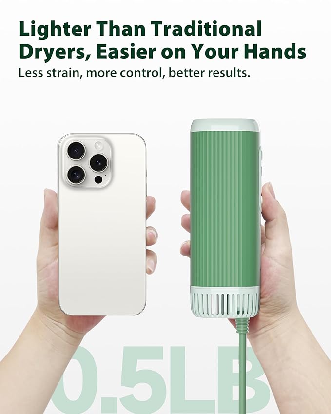 L&W BROS. Hands-Free Dog Dryer – Powerful & Professional Pet Blow Dryer for Small & Medium Dogs & Cats, Adjustable Airflow, Easy Storage, Negative Ion Technology (Green)