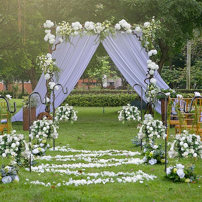- Widely Used: these outdoor shepherd hook are suitable for hanging various decorations, such as flower pots, bird feeders, wind chimes, garden lights, etc., not only beautifies the garden decorations, but also hang flower balls on both sides of the wedding aisle to make your wedding more elegant and grand, and can hang relevant holiday decorations in Halloween or Christmas, flexible shepherds hook can seamlessly integrate into any event or season, adding unique scenery to your decoration space