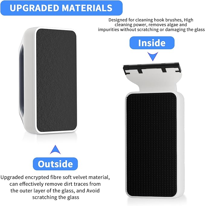 - 【Upgraded Materials】Compared to other magnetic glass cleaners, the adsorption surface of the brush on the outside part of our tank is very flat, and the lint is delicate and easier to separate. Avoid sticking and scratching the glass.