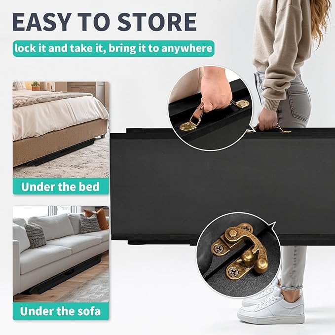 - Foldable & Fully Assembled- The Ramp easily folds flat and comes with a handle and side lock for easy storage or carrying. In addition, it is fully assembled and can be used once unpacked. Very easy to use