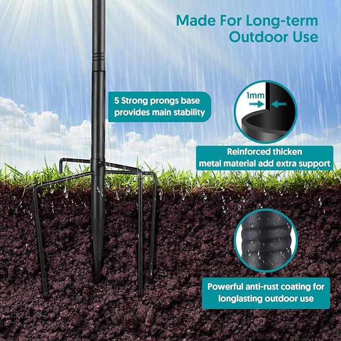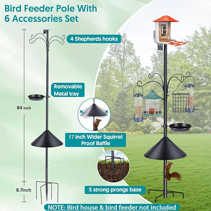 - True Heavy-duty Bird Feeder Pole - Our outdoor birdhouse pole total 92 inch tall, We upgrade with thicker and stronger mental material coated with rust-resistant powder, features 5 strong prongs base can anchoring into the ground provides stability, stick still! No worrying strong winds or horrible weather any more, rust-resistant wind-proof.(Bird house and bird feeder not included)