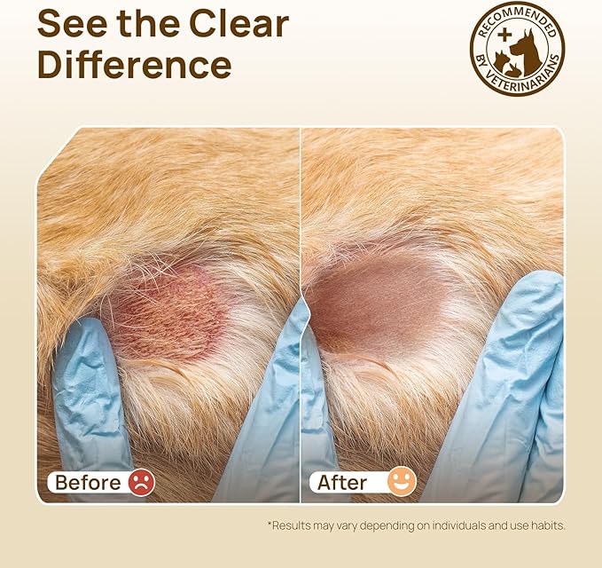 - Fast Itch Relief and Skin Soothing: Hot spot treatment for dogs provide rapid itch relief within seconds, soothing your pet's skin irritation caused by seasonal changes, allergies, hot spots, and other skin issues, thereby help reduce scratching and licking, preventing wound infections and promoting healing. Additionally, the dog itching skin relief effectively reduce skin inflammation and deeply hydrate pet's skin, helping to maintain healthy skin