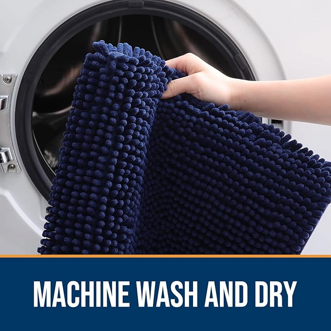 OLANLY Dog Door Mat for Muddy Paws 54x32, Absorbs Moisture and Dirt, Absorbent Non-Slip Washable Doormat, Quick Dry Chenille Mud Mat for Dogs, Entry Indoor Entryway Carpet for Inside Floor, Navy Blue