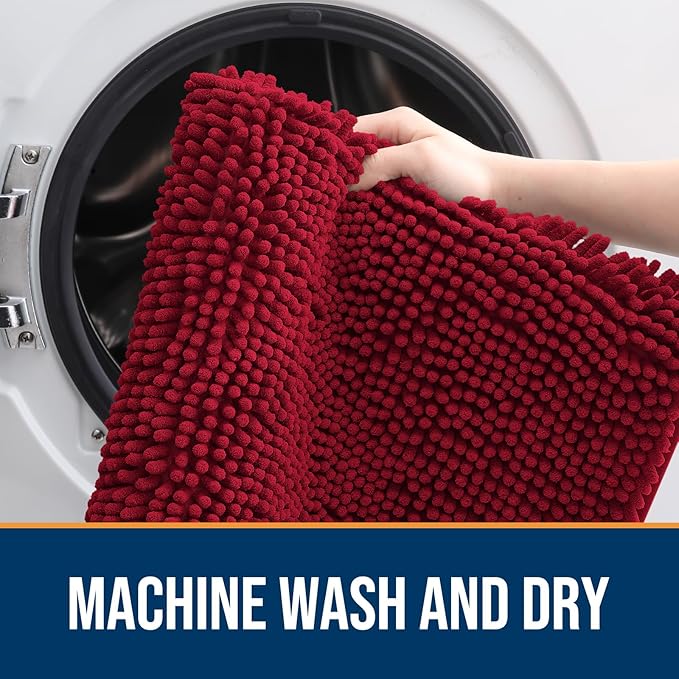 OLANLY Dog Door Mat for Muddy Paws 47x17, Absorbs Moisture and Dirt, Absorbent Non-Slip Washable Doormat, Quick Dry Chenille Mud Mat for Dogs, Entry Indoor Entryway Carpet for Inside Floor, Red