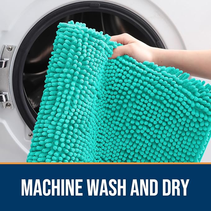 OLANLY Dog Door Mat for Muddy Paws 70x46, Absorbs Moisture and Dirt, Absorbent Non-Slip Washable Doormat, Quick Dry Chenille Mud Mat for Dogs, Entry Indoor Entryway Carpet for Inside Floor, Teal
