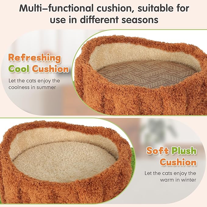 - 【Ultra-Soft Plush Upholstery】Wrapped in premium plush fabric, this cat tree offers a cozy and inviting atmosphere for your pets. The soft material is gentle on their paws and ideal for lounging, ensuring that your cats have a comfortable resting space at all times.