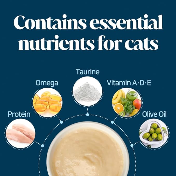 - NUTRIENT-RICH FORMULA: Packed with essential vitamins, taurine, omega fatty acids, protein, and olive oil to support overall feline health. Each tube provides complete nutritional support in a delicious treat!