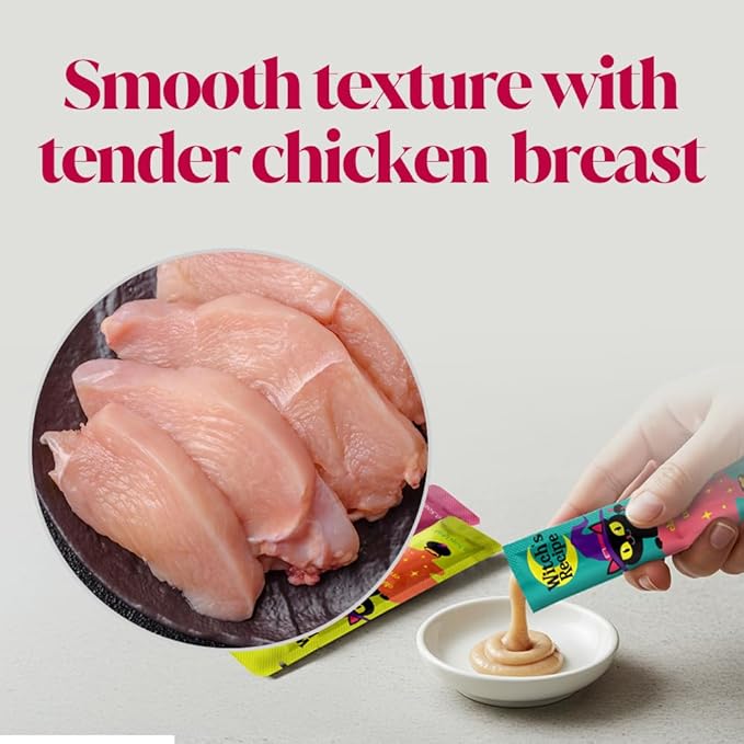 Witch's Recipe Lickable Cat Treats, Creamy Squeezable Puree, Grain-Free, 100 Tubes, Chicken Tuna Salmon goatmilk Capelin Flavors 0.5oz Each Tube