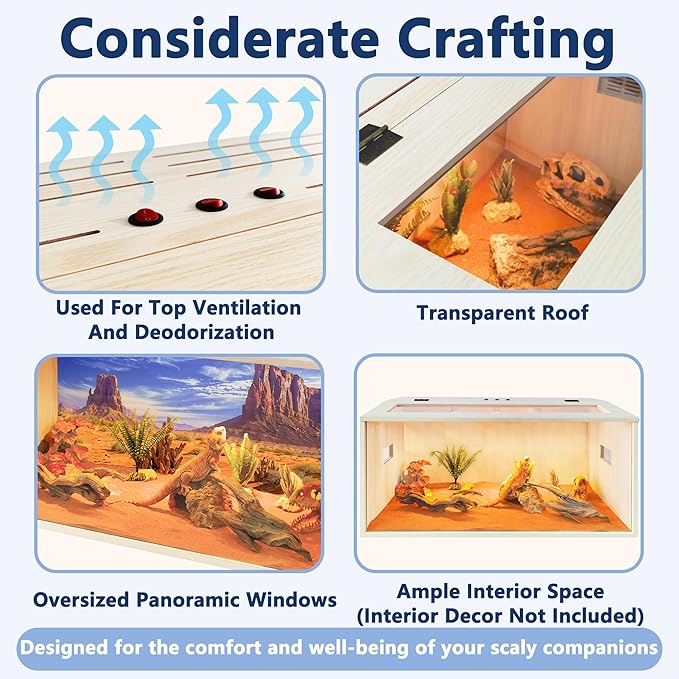 - 【Premium Reptile Habitat】Designed for reptile enthusiasts, our enclosure offers a spacious interior for your reptiles to roam freely. The transparent front and top acrylic panels provide an unobstructed view, while top vents ensure proper air circulation. Please note: This tank is not suitable for holding water and is available in 4 size variants!