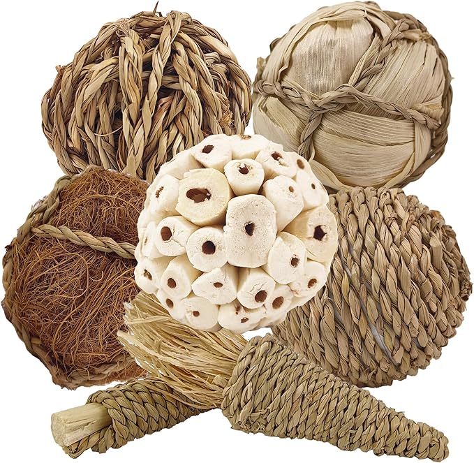 7Pcs Bird Toy Large Chewing Balls - Natural Soft Chew Shredding & Foraging Toy for Cockatiel Conure Quaker Parrot Budgie Parakeet Rabbit Bunny Guinea Pig Chinchilla