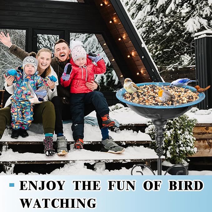- Sturdy & Stable Birdbath: The whole bird bath and the pedestal are made of premium quality metal and and covered with safety coating, long-lasting and sturdy, can resist rain, water, and other weather, withstand strong sunlight and cold temperatures.