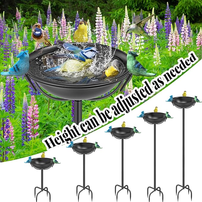 - 【Beautiful Decor Birdbath for Garden】5 adjustable height birdbaths to meet your height needs. Easily removable birdbath for easy water changes and cleanup.3 lifelike hand-painted resin birds that are both beautiful and attract birds to your garden. Aesthetically pleasing and practical