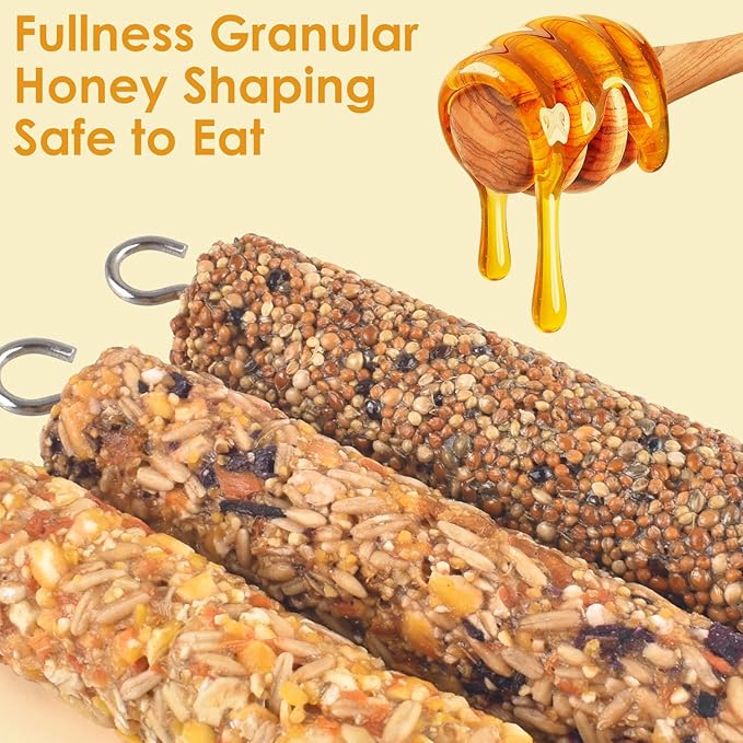 - CORE NUTRIENT TREATS: Multiple natural grains mixed by using honey sticked and shaped, rich in coarse fiber, vitamins, minerals and trace elements, easy to chew, and can promote birds' digestion, which is beneficial for their intestinal health