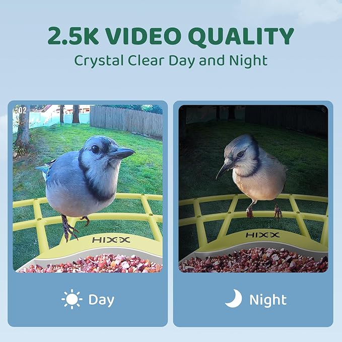 - Stunning 2K Color HD & Color Night Vision : Get Yours Now & Start Your HD Birdwatching Journey! HIXX HiCIRCLE video bird feeder features a 2K HD camera that brings you up close to birds’ lively movements, capturing fine feather details or tiny birds in action. With a 150° ultra-wide lens, it covers more area effortlessly - no angle adjustments needed! The full-color night vision can capture clear pictures even after dark, retaining the true color of objects, providing all-weather observation