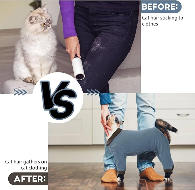 - Unique Design Cat Outfit- Our cat shirt is threaded in the cuffs, collar, and cuffs of this kitten suit, which can better fit the pet's body and prevent hair from falling off. Wearing cat healing onesie will greatly alleviate anxiety and cat onesie to prevent licking
