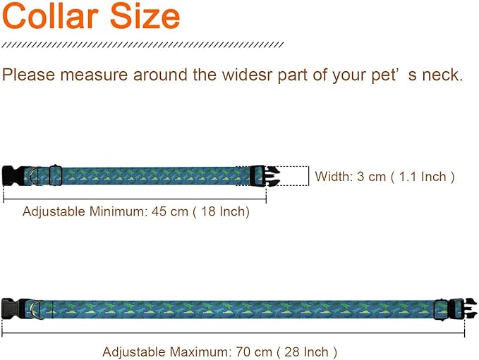 - 2. Material: This Green Dinosaur Blue dog collars is made of soft, comfortable and elastic polyester fabric, our pet collar strap is designed to be both anti-slip and wear-resistant, ensuring long-lasting use while keeping your furry friend cozy.