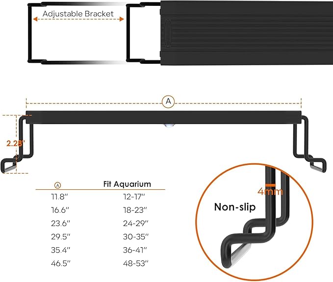 - 【IP67 Waterproof and Extendable Bracket】 With an IP67 waterproof, the light offers enhanced safety and durability in aquatic environments. The extendable brackets allow flexible adjustments to fit various aquarium sizes, making installation more convenient and adaptable to different tank dimension.