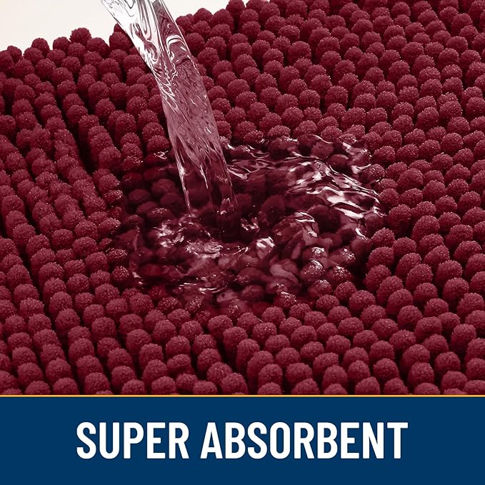 Smiry Dog Door Mat for Muddy Paws 24x16, Absorbs Moisture and Dirt Doormat, Non-Slip Washable Quick Dry Chenille Front Door Mat Indoor Entrance, Entryway Carpet for Inside Floor, Burgundy