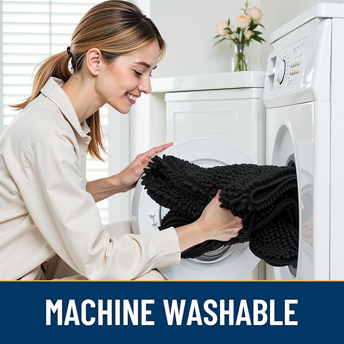 - [Easy Clean and Care] Our indoor door mat for muddy paws is also easy to clean and maintain. Simply shake off the dust or machine wash it for a deeper clean. It dries quickly, so you can be sure it's ready to use again in a short time. Please wash with cold water and dry naturally or at low temperature.