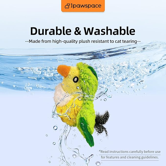 Interactive Flapping Bird Cat Toy with Catnip, Touch Activated Rechargeable, Musical Sound (can Turn Off), Satisfy Cat's Natural Huting Instinct, Soft Plush Washable Cover (Green)