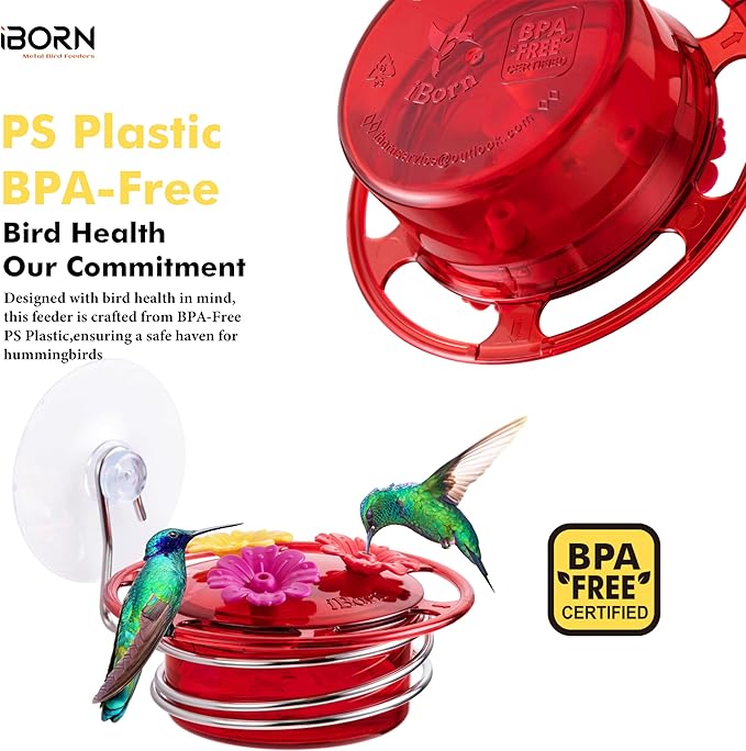 - 【Eco-Safe Design: BPA-Free & Bird-Friendly】iBorn hummingbird feeders for outdoors is crafted from environmental, BPA-Free PS materials, it provides a safe drinking spot for your tiny winged visitors. Just enjoy worry-free hummingbird encounters with our eco-friendly, BPA-free handheld humming bird feeder!