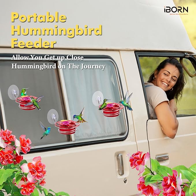 - 【2025 iBorn New Release, Window Hummingbird Feeder】Perfect for bird lovers, travelers, and outdoor enthusiasts, this compact and lightweight feeder lets you attract these dazzling creatures anytime, anywhere. Made from durable, BPA-free materials with a comfortable grip, it’s safe for birds and easy to clean. The feeding ports are designed to reference a favorite flower of hummingbirds, Fuchsias. Once you fill the feeder with nectar, you can watch as hummingbirds flock to your window in a flash.