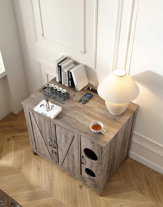 Cat Litter Robot Enclosure, Automatic Litter Box Enclosure for Litter Robot 3/4,Cat-Exclusive entrace for Dog Proof and Fun,Charging Station for cat Litter Cabinet,Litter Collector and Lock,Grey