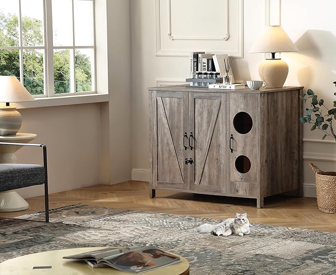 - 4)【Easy Assembly of litter box enclosure furniture】;All parts and accessories are labeled, plus step-by-step instructions are included to ensure a quick and easy setup.We have streamlined all possible steps without compromising quality to achieve optimal and straightforward installation process.
