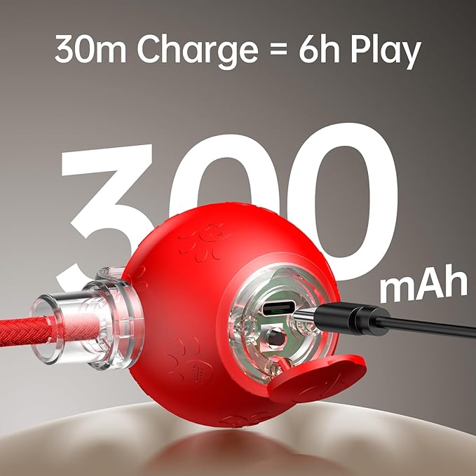 - 【Powerful Long - Lasting Battery】With a built - in 300mAh rechargeable battery, it only takes 30 minutes to fully charge and provides up to 6 hours of interactive playtime. The strong battery life allows your cat to enjoy endless chasing fun without frequent recharging, offering continuous companionship during daily play or when you're away from home.