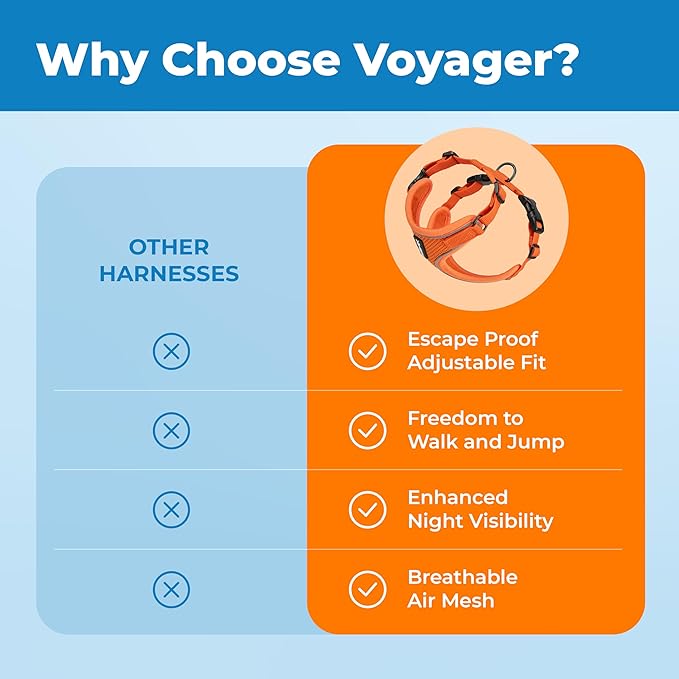 - Fully Adjustable: To prevent your cats and kitty from escaping or backing out of the harness, Voyager Cat Harness is equipped with fully adjustable straps around the neck and chest to ensure perfect and escape proof fit