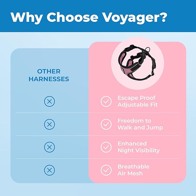 - Fully Adjustable: To prevent your cats and kitty from escaping or backing out of the harness, Voyager Cat Harness is equipped with fully adjustable straps around the neck and chest to ensure perfect and escape proof fit