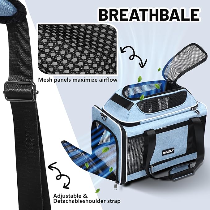 Cat Carrier Top-Expandable 18x11x11, United Delta American Airline Approved Dog Carrier, Soft Pet Carry-On Bag Underseat in Cabin, Puppy Air Travel Crate Kitten TSA Plane Carrying Case Blue