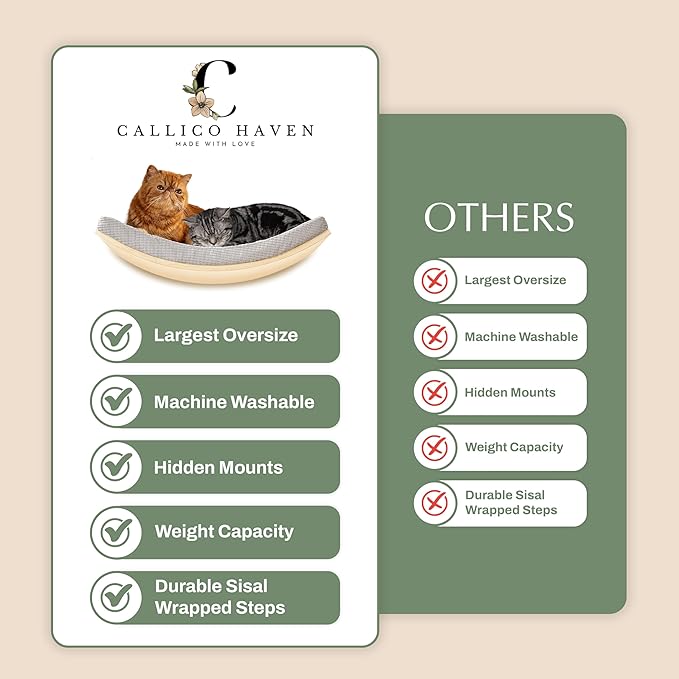 Extra Large 23.6”×14.6” CALLICO HAVEN- Stylish Cat Wall Shelves with Curved Design, Modern Wall-Mounted Cat Tree Hammock with Soft Cushion, Sturdy/Hidden Mounts, Washable Cover, Sleek Design -C Shape