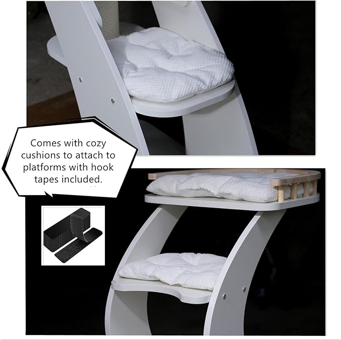 - WINDOW VIEWING: Comes with cozy cushions to attach to each spacious platform with tapes, giving cats cozy spots to watch outdoor activities.