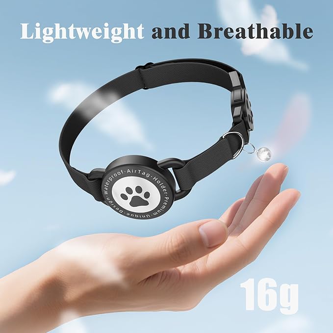 - 𝐋𝐢𝐠𝐡𝐭𝐰𝐞𝐢𝐠𝐡𝐭 𝐚𝐧𝐝 𝐂𝐨𝐦𝐟𝐨𝐫𝐭𝐚𝐛𝐥𝐞: This featherlight 0.25 oz cat AirTag collar combines style and strength, Made with tough polyester webbing, provides maximum comfort for your cat, so they won't even notice they're wearing it.