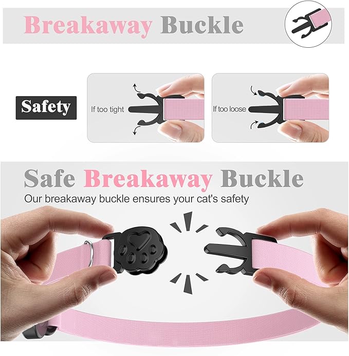 - 𝐁𝐫𝐞𝐚𝐤𝐚𝐰𝐚𝐲 𝐃𝐞𝐬𝐢𝐠𝐧 𝐟𝐨𝐫 𝐒𝐚𝐟𝐞 𝐄𝐬𝐜𝐚𝐩𝐞𝐬: Designed for safety, the breakaway buckle releases under pressure, preventing accidents while your curious cat roams. No worries about snagging on trees or furniture!