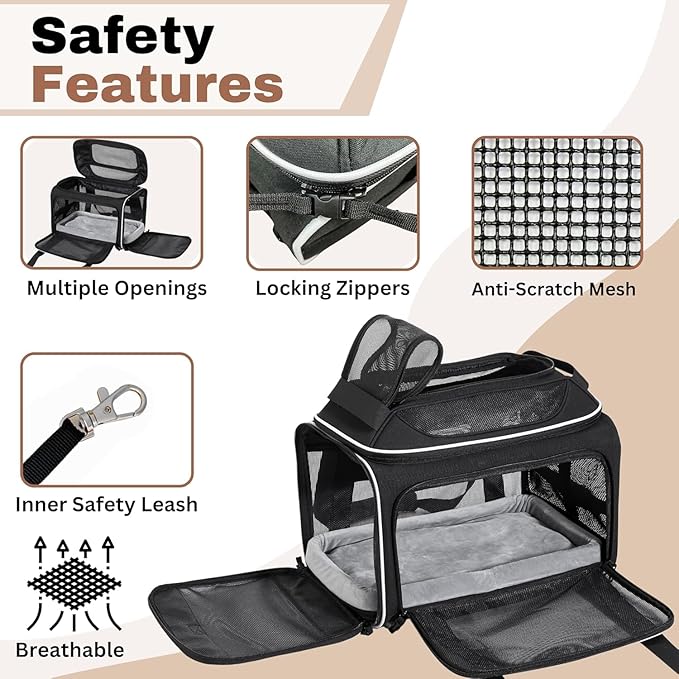 - SUPERIOR QUALITY: This masterfully crafted airline pet carrier tote is made from high quality, safe, and durable materials. Unlike other expandable carriers which clearly sag when expanded, we have added a thick wire frame at the top for extra stability, eliminating sagging corners.