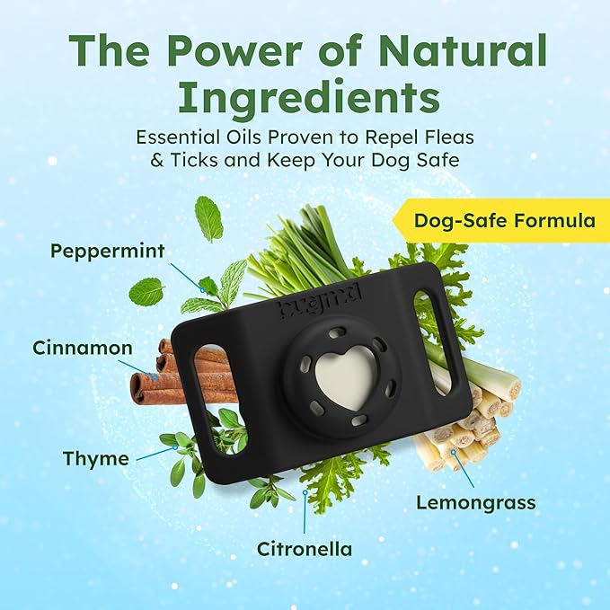 BugMD Paw Guardian Flea and Tick Prevention Pendant for Dogs with AirTag Holder | Plant-Powered Flea & Tick Control for Dog Collars Harnesses | Dog Tag with Air Tag Holder - Black