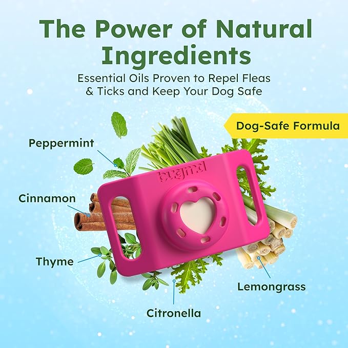 BugMD Paw Guardian Flea and Tick Prevention Pendant for Dogs with AirTag Holder | Plant-Powered Flea & Tick Control for Dog Collars Harnesses | Dog Tag with Air Tag Holder - Pink