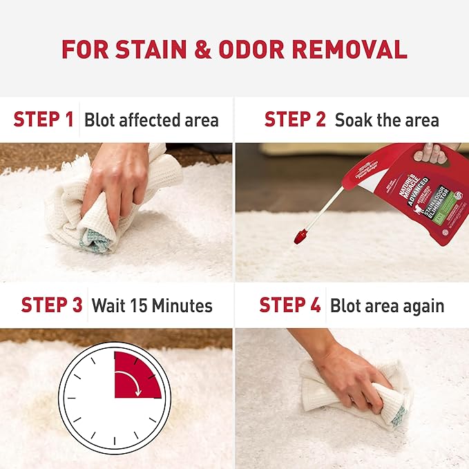 - ENZYMATIC FORMULA FOR SEVERE DOG MESSES: The formula produces enzymes to power out severe dog stains and odors, such as urine, feces and vomit.