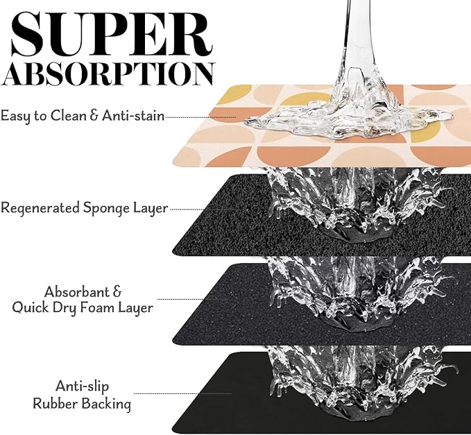 - Super Absorption: The dog mat for water bowl can absorb spilled water without leaving traces and dry quick, avoid wetting pet paws even for messy drinkers. And it does not attract pet hair like traditional silicone dog bowl mat.