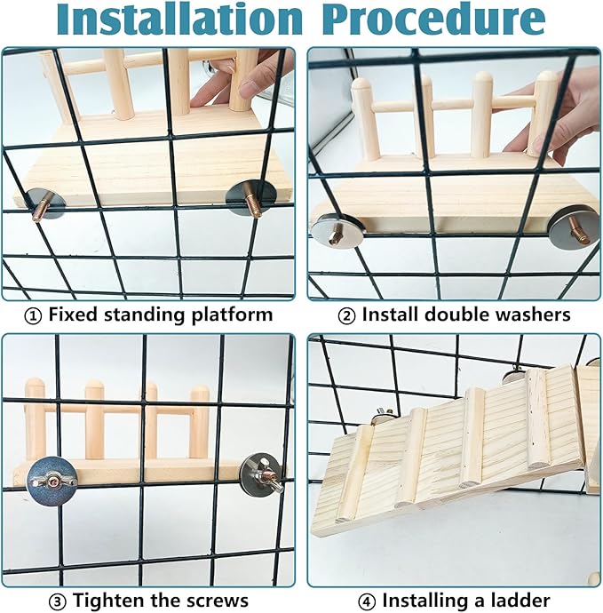 - Bird perch platform: The bird perch platform is made of natural wood, assembled with nuts and screws, and can be firmly installed in the parrot cage. Don't worry about your bird falling off. Easy to install, durable, suitable for daily use by birds